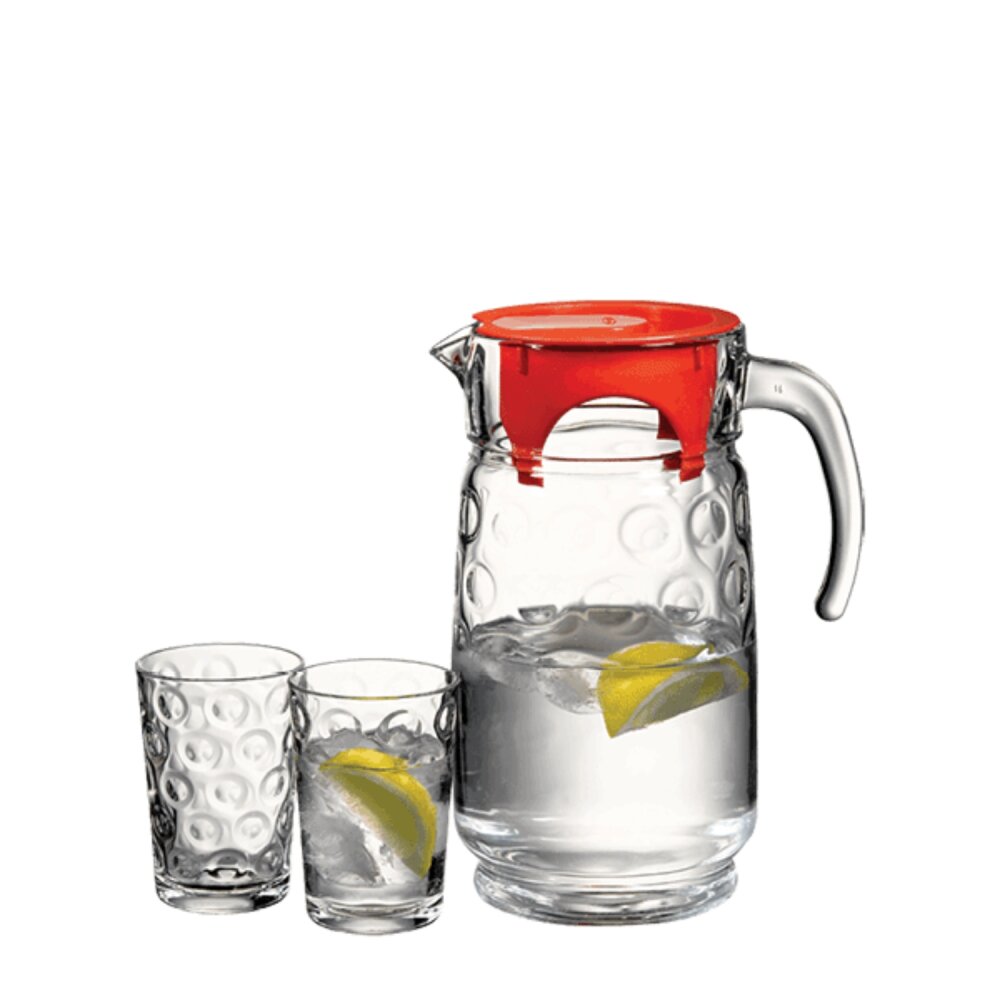 Sürahi 1700 cc hacmiyle geniş iç hacmi sunar, bu da daha fazla suyu veya içeceği tek seferde doldurmanızı sağlar. Bardaklar ise 205 cc hacmiyle ideal içecek miktarını sunar.