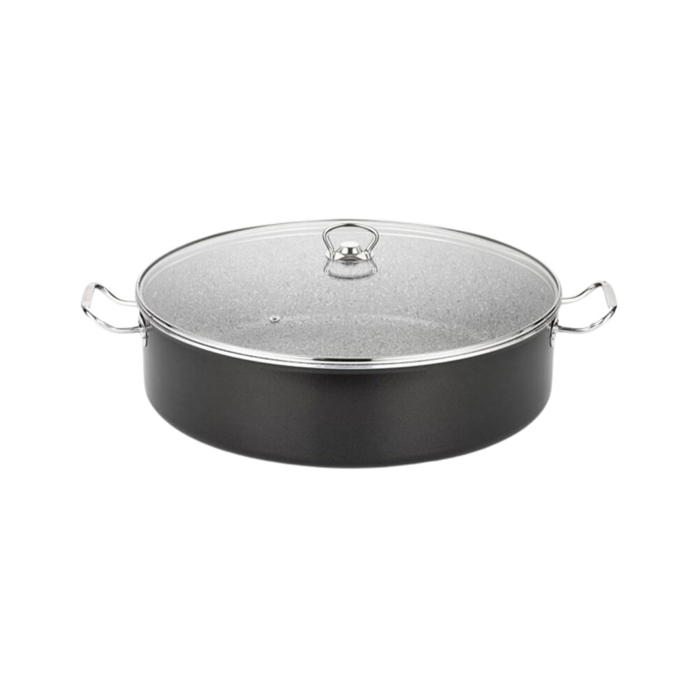 Malzeme: Granit kaplama üzerine yapılmış yapışmaz yüzeyli gövde; dış yüzey ve kulplar profesyonel kullanım için dayanıklı dizayn edilmiş.