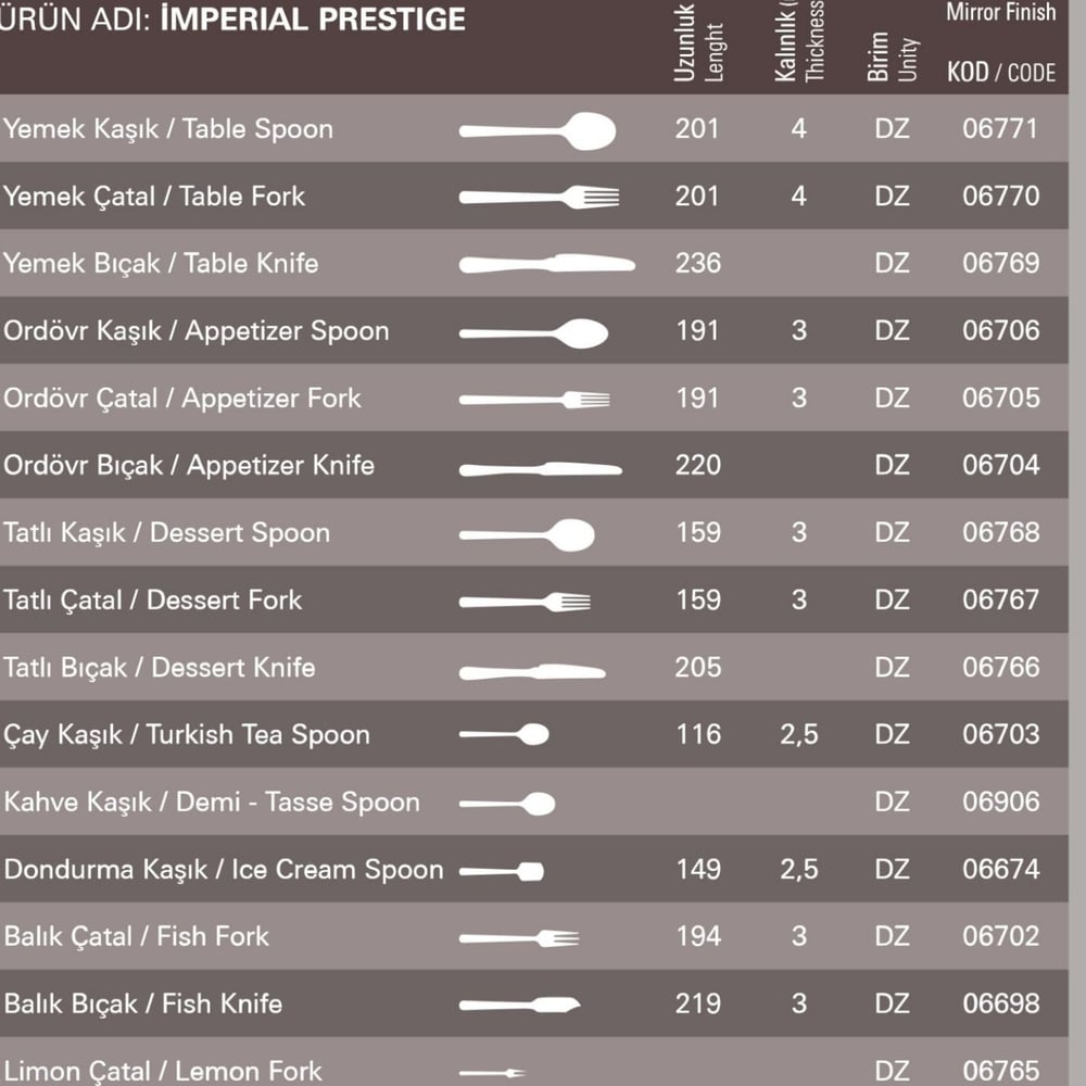 Bıçak genişliği ve kalınlığı ise genellikle standart ölçülerdedir.