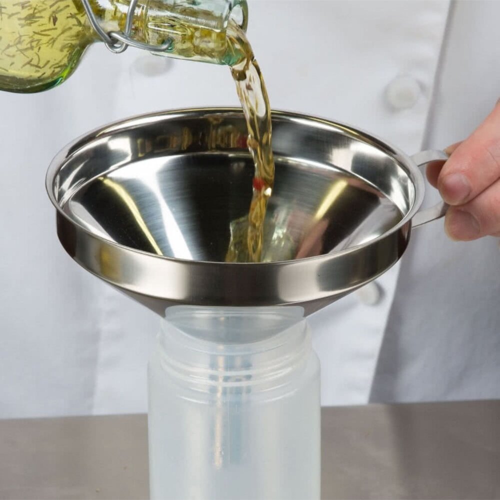 Kullanım Alanları: Özellikle sıvıları veya tozları bir kap veya şişeye dökmeden önce süzmek veya aktarmak için tasarlanmıştır. Örneğin, reçel yaparken meyve suyunu süzmek veya un gibi toz maddeleri ambalajlarına dökmek için kullanılabilir.