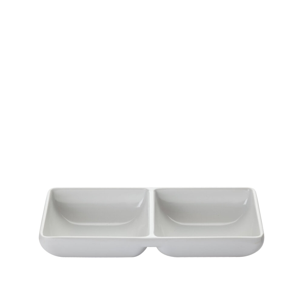 Beyaz Melamin 2 Bölmeli Sunum Tabak 7x14 cm, pratiklik ve şıklığı bir araya getirerek kullanıcılarına mutfakta ve sofrada fonksiyonel bir deneyim sunar. Dayanıklı malzemesi ve iki bölmesiyle çeşitli kullanım alanlarına uyum sağlar. Şimdi satın alın ve sunumlarınızı daha düzenli ve şık hale getirin!