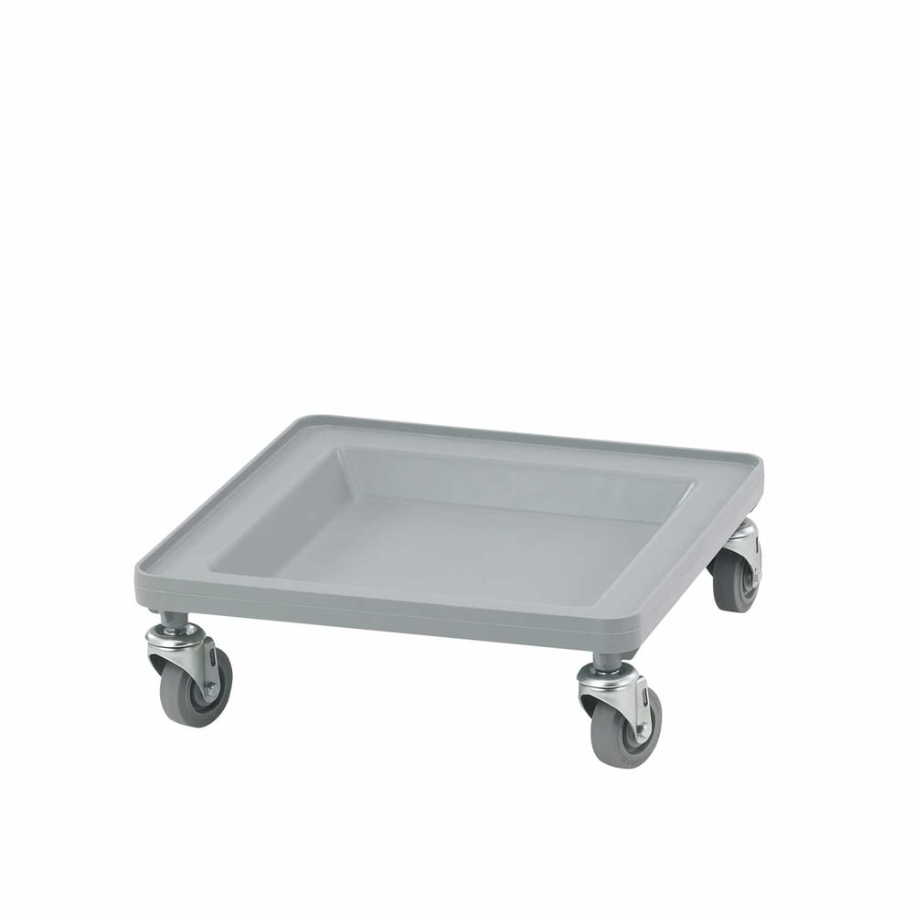 Cambro Camdolly Basket Taşıma Arabası, 530 mm x 530 mm ölçülerindedir ve farklı taşıma kutuları ile uyumlu şekilde kullanılabilir.