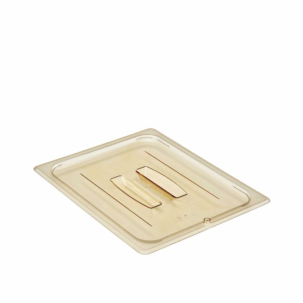 Cambro Gastronom Kulplu Delikli Küvet Kapak 265*325 mm Gn 1/2 20HPCH150, sağlam polikarbonat malzeme ve kulplu tasarımı ile mutfaklarda pratik ve dayanıklı bir çözümdür.