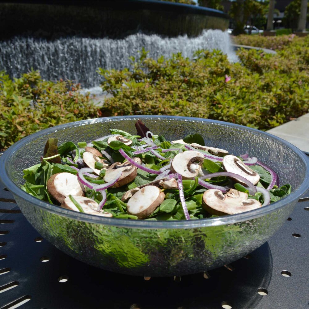 Cambro Polikarbon Çakıl Taşı Görünümlü Yuvarlak Kase, dayanıklılığı ve benzersiz tasarımıyla hem profesyonel hem de ev ortamında estetik sunumların vazgeçilmez bir parçasıdır. Göz alıcı görünümü ve geniş kapasitesiyle sofralarınızı güzelleştirir.