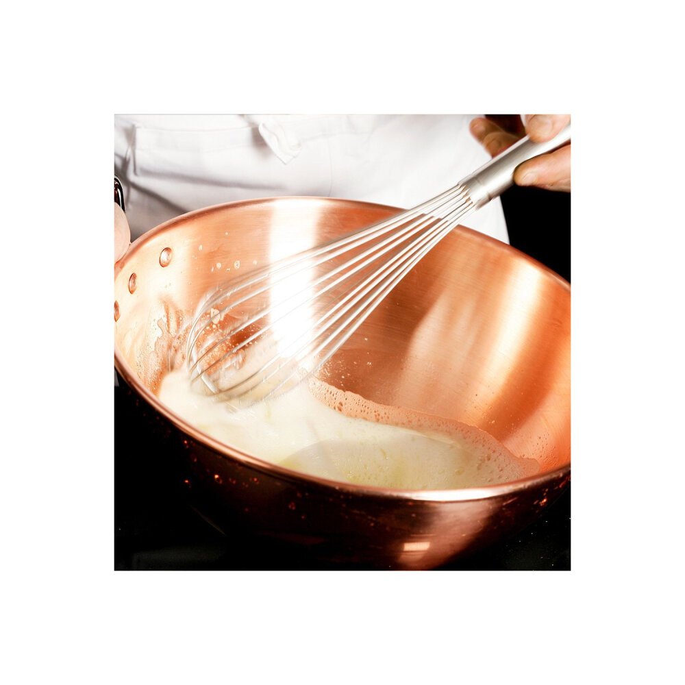Gelince Haber VerDe Buyer markasına ait bu yüksek kaliteli bakır mayonez tenceresi, 300 mm çapında ve profesyonel mutfaklar için idealdir. Bakırdan yapılmış olması, mükemmel ısı dağılımı sağlar ve bu da mayonezin homojen bir şekilde karışmasını kolaylaştırır.
