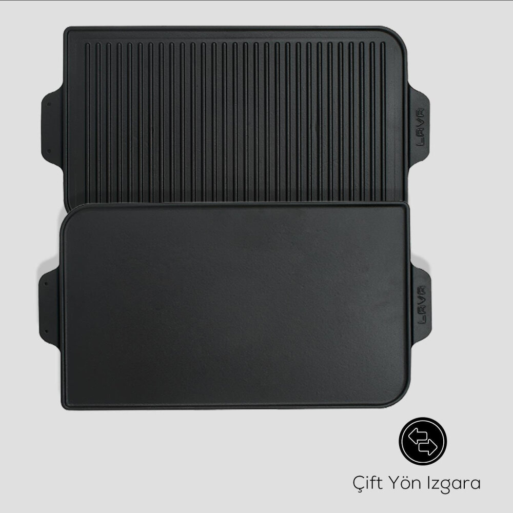 Lava Griddle Bir Tarafı Düz Diğer Tarafı Oluklu 26X47Cm