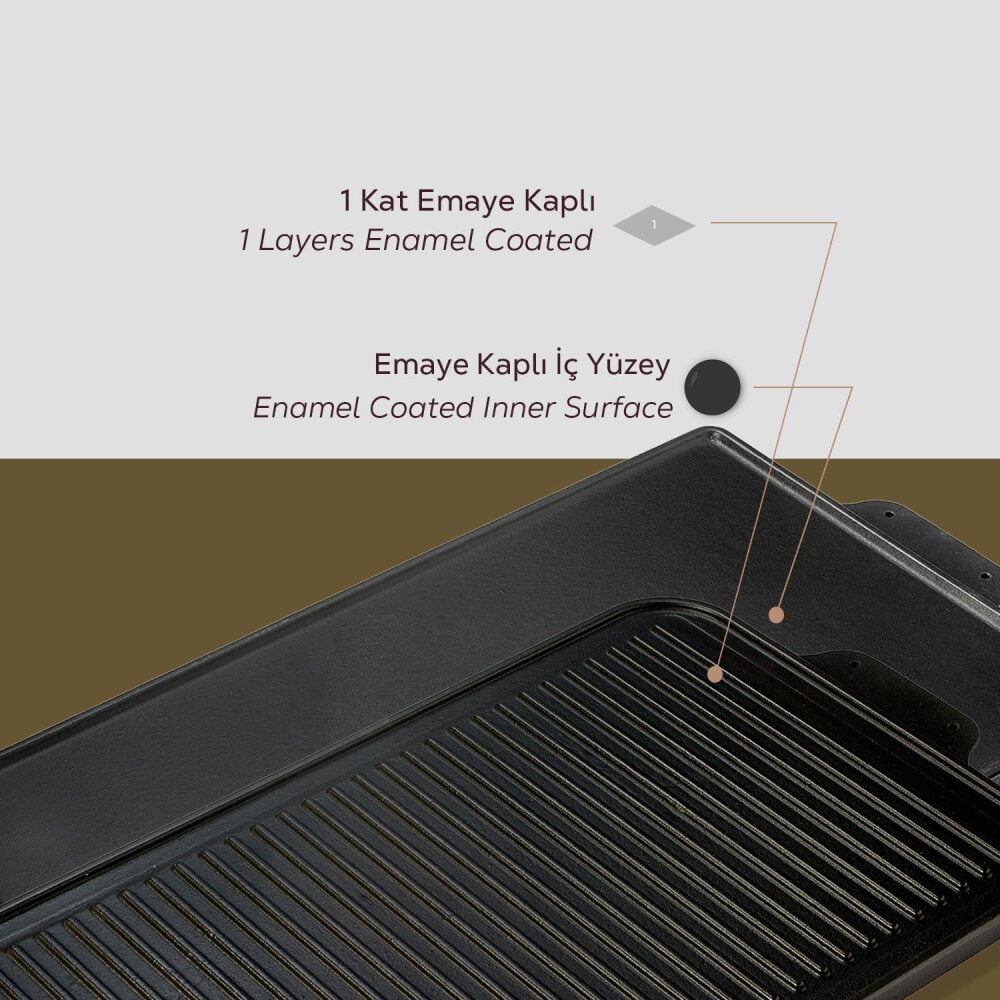 Çift Yüzey: Bir tarafı düz, diğer tarafı oluklu tasarımı sayesinde hem düz pişirme hem de ızgara pişirme işlemleri yapabilirsiniz.