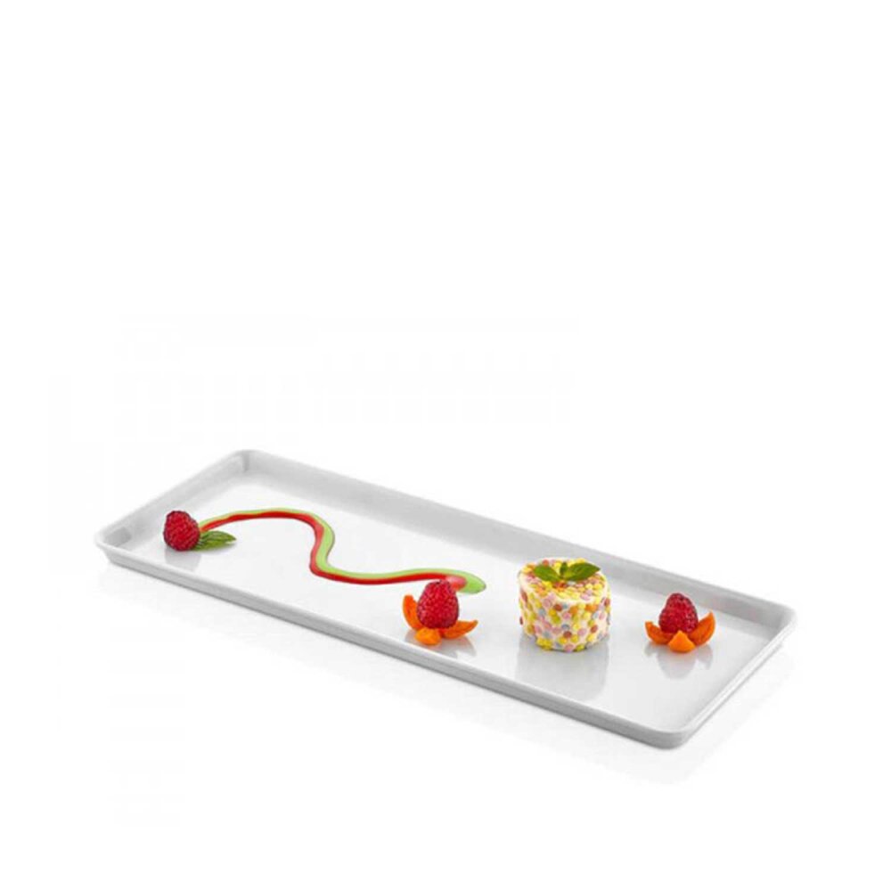 Külsan Thermoset Dikdörgen Sunum, çeşitli yemek sunumlarında kullanılabilir. Özellikle mezeler, atıştırmalıklar, sandviçler, tatlılar ve diğer hafif yemekler için uygundur. Geniş boyutuyla büyük miktarlarda yiyecekleri rahatlıkla yerleştirebilirsiniz.