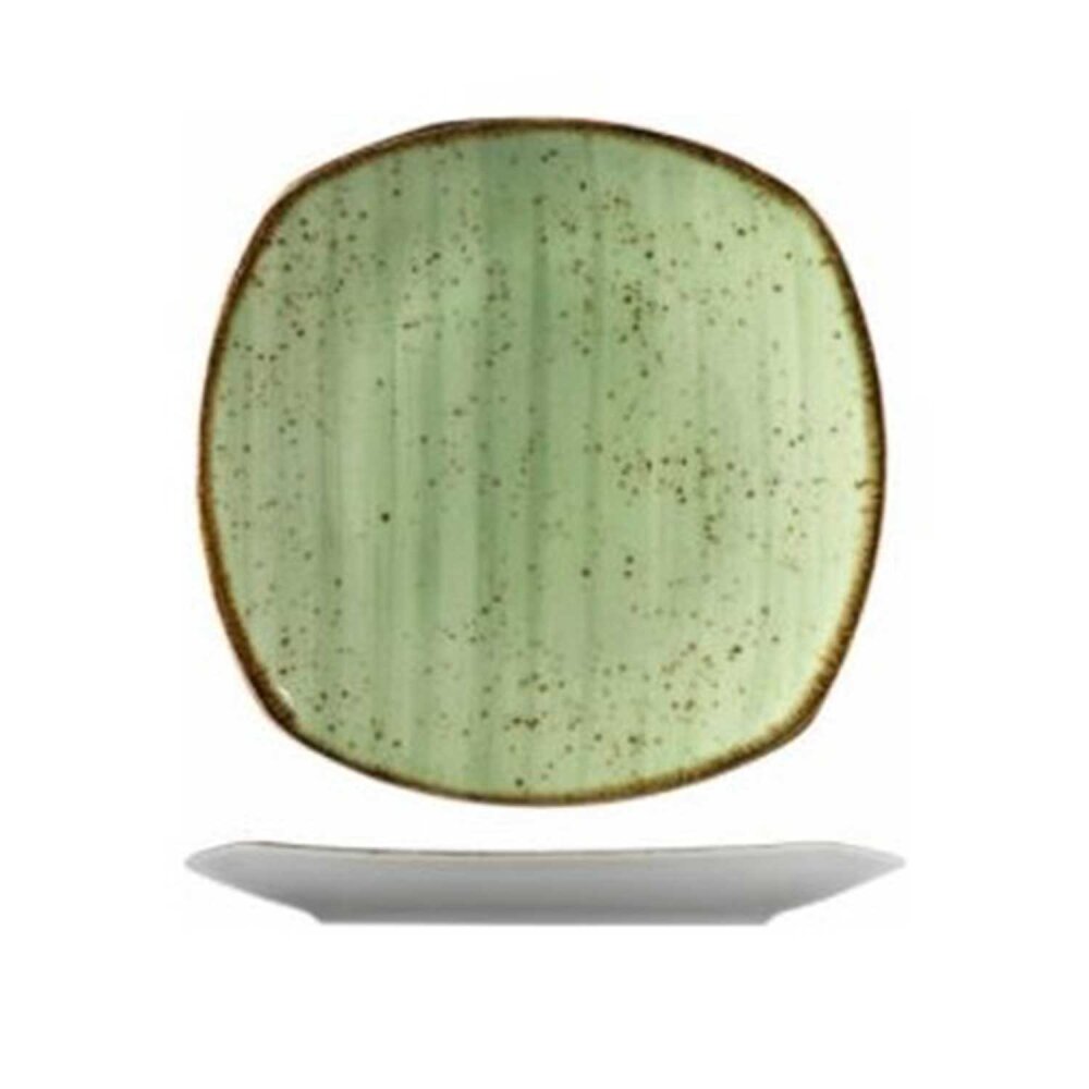Yeşil benekli file desenli bu düz tabak, sofranıza zariflik ve şıklık katarken, kullanımı da son derece pratiktir.