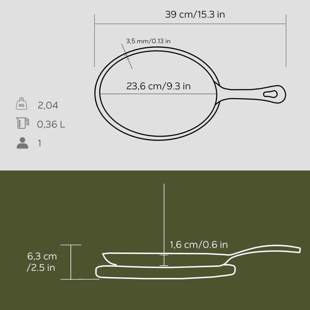 Döküm demir malzemesi sayesinde tava uzun ömürlü ve aşınmalara karşı dayanıklıdır.