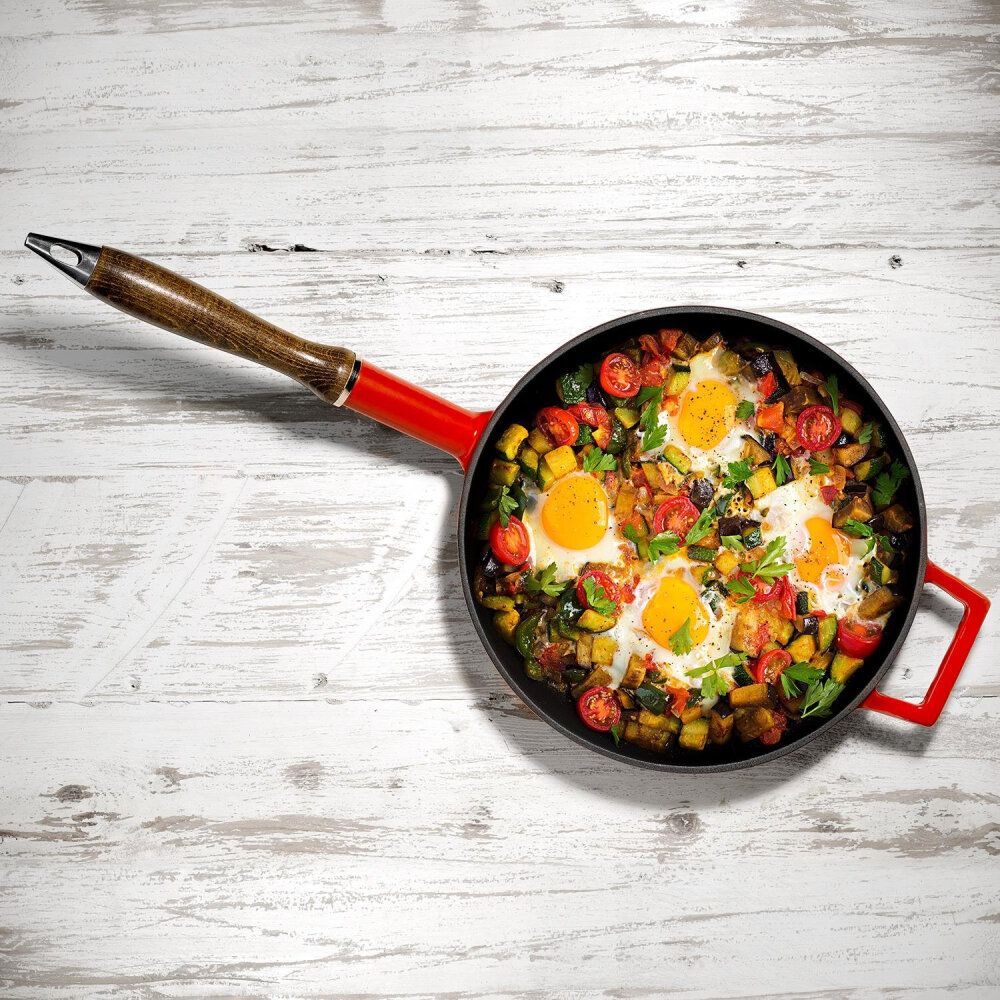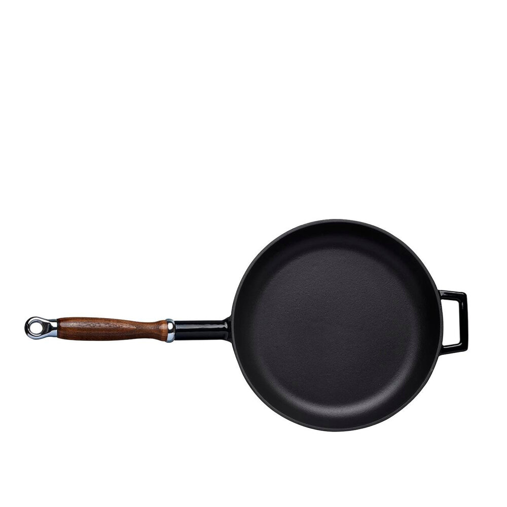 Ahşap kulplar, tava için şık bir görünüm ve kolay taşınabilirlik sağlar.