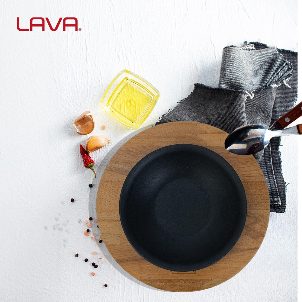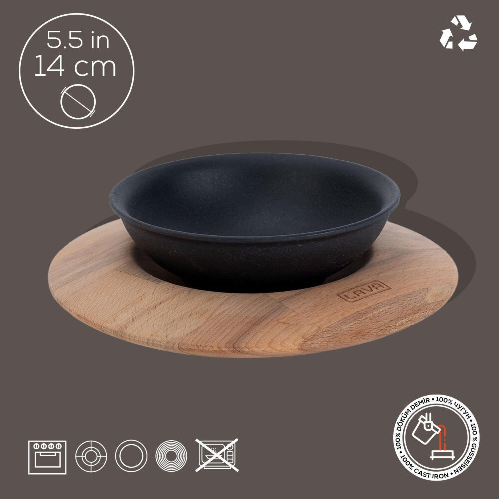 Lava Yuvarlak Kase, 14 cm çapında, sıcak ve soğuk servisler için ideal bir dökme demir kase olup, doğal ahşap altlığı ile birlikte sunulur. Şık ve kullanışlı tasarımıyla yemeklerinizi estetik bir şekilde sunmanızı sağlar. Ahşap altlık, ısının masaya geçmesini engellerken, kaseyi güvenli bir şekilde yerleştirme imkanı tanır.