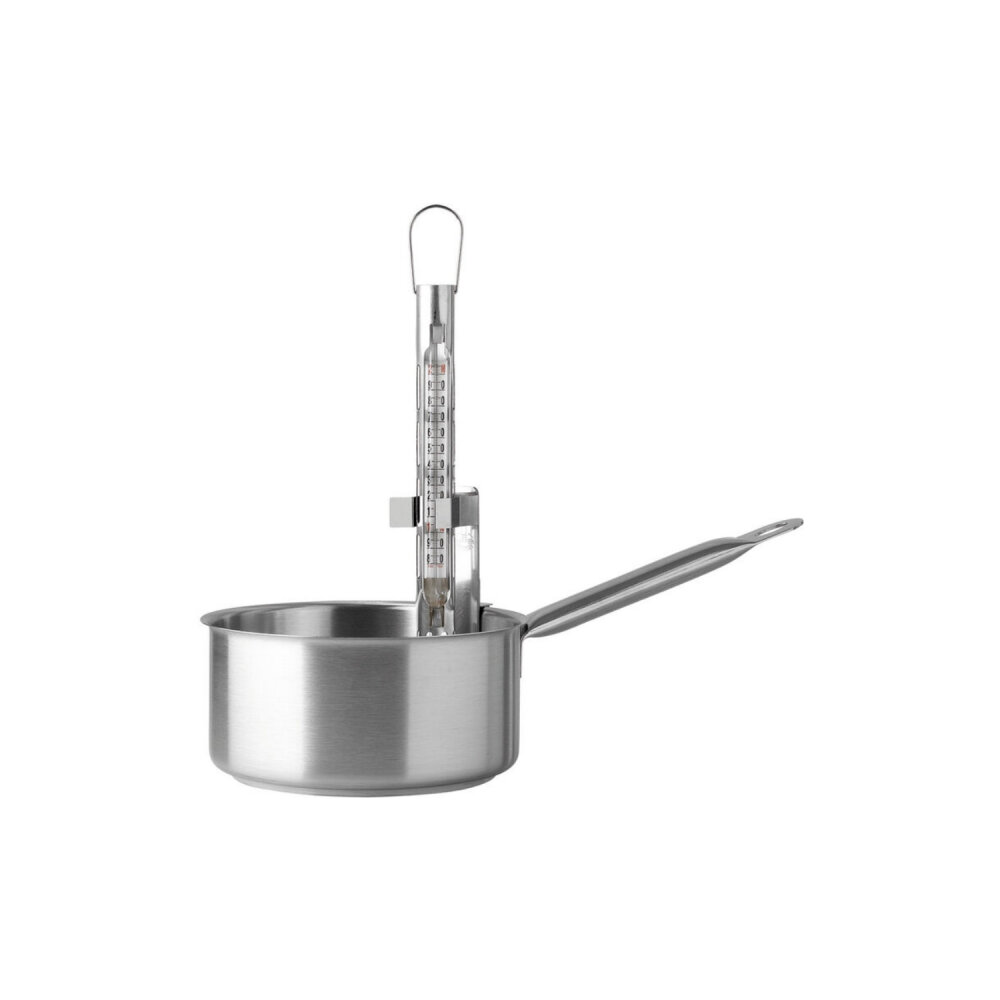 Matfer Şeker Termometresi, şekerli tatlılar ve konfitürler hazırlarken kesin ve güvenilir sıcaklık ölçümü sağlamak için özel olarak tasarlanmış bir mutfak aletidir. Şeker ve şekerli karışımların doğru sıcaklıkta pişirilmesi, başarılı sonuçlar elde etmek için kritik öneme sahiptir. Bu termometre, özellikle şekerli tariflerde hassasiyet ve doğruluk sağlar.