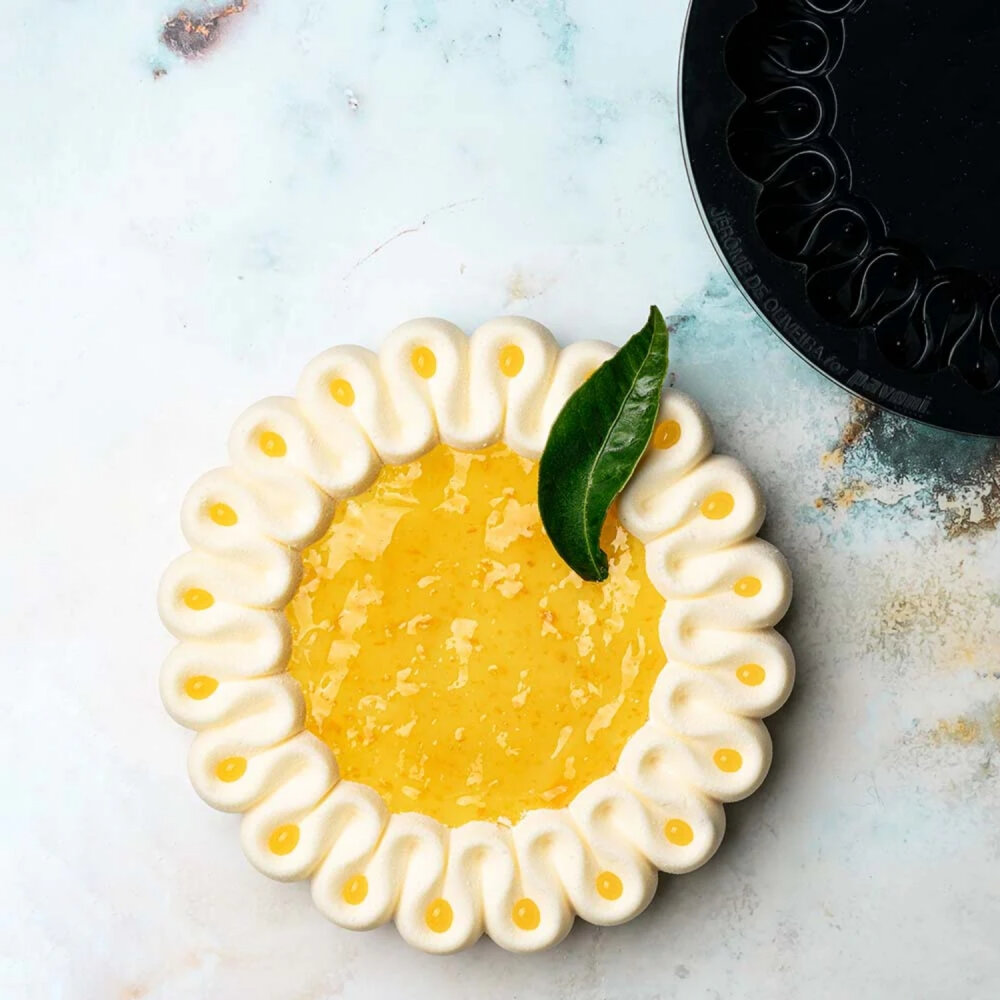 Pavoni Ondulation modeli, dalgalı yüzey tasarımı ile modern pastacılıkta estetik ve özgün sunumlar yaratmak için tasarlanmış özel bir silikon kalıptır. Tek parça tatlılar, mousse ve pasta şeritleri için idealdir.
