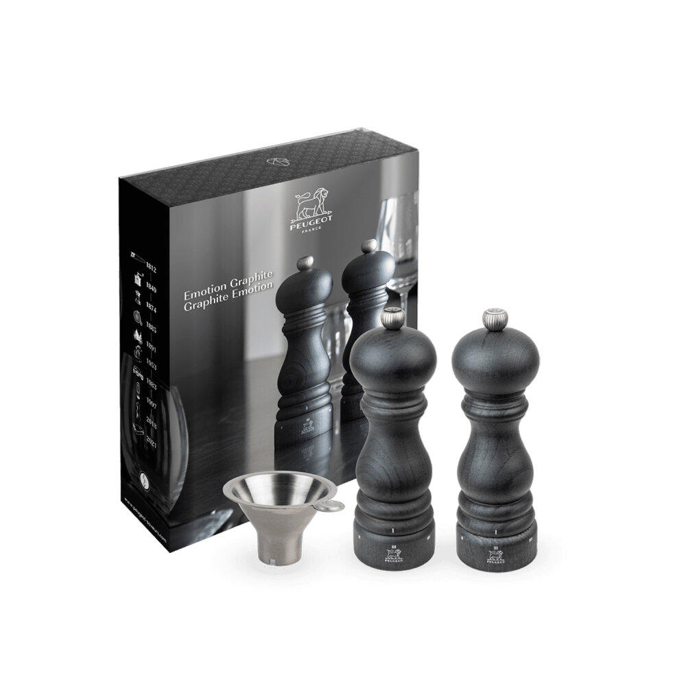 Peugeot Duo Specific Paris Graphite Değirmen Seti, modern mutfakların vazgeçilmez bir parçası olacak şık ve fonksiyonel bir üründür. Hem tuz hem de karabiber değirmenlerinden oluşan bu set, yüksek kaliteli malzemeleri ve üstün işlevselliği ile öne çıkar.