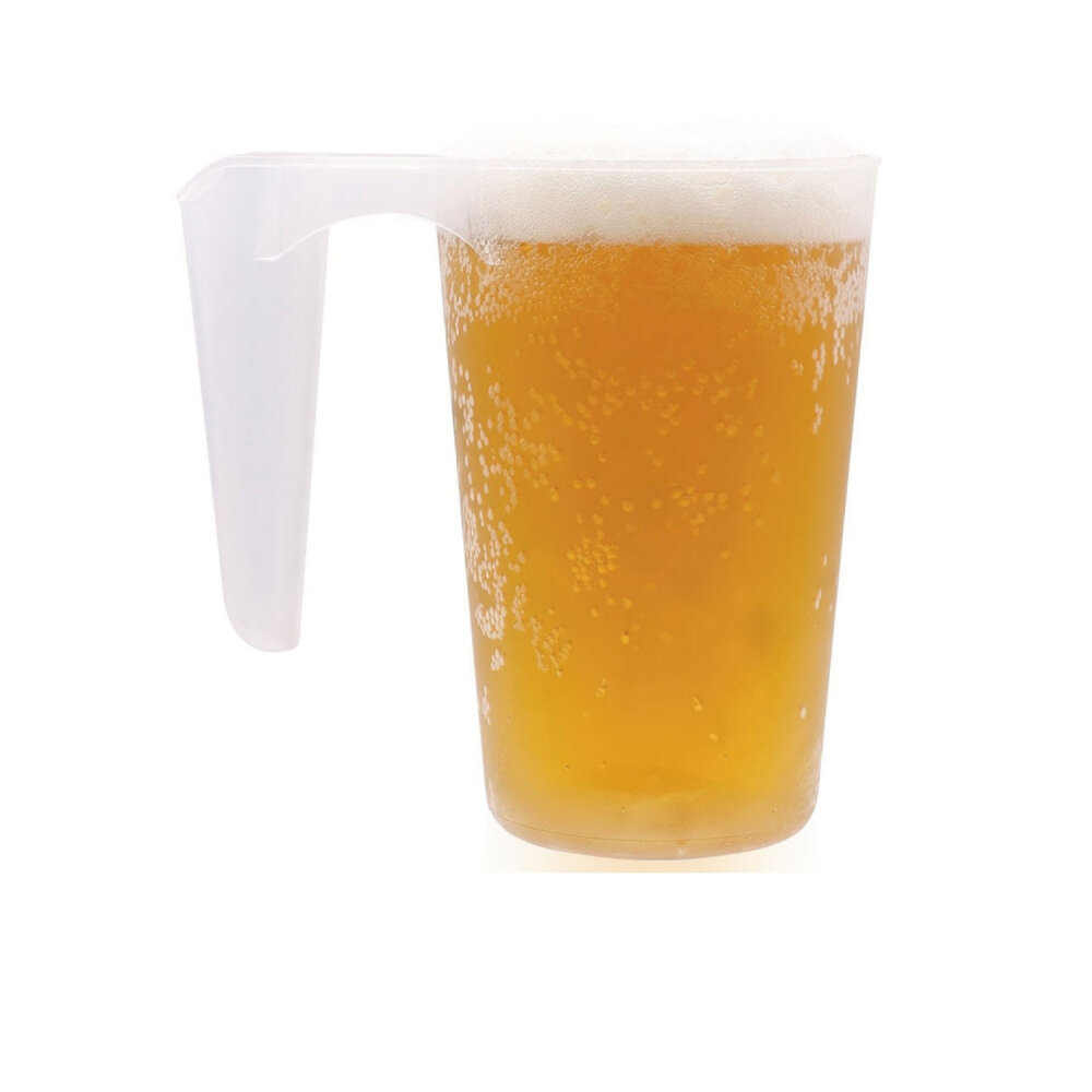 Bu dayanıklı ve pratik kulplu bardak, geniş hacmi ve stoklanabilir yapısıyla hem ticari hem de bireysel kullanımlar için uygundur. Şeffaf plastik görünümüyle içecek sunumlarında işlevsellik ve sadelik sunar.