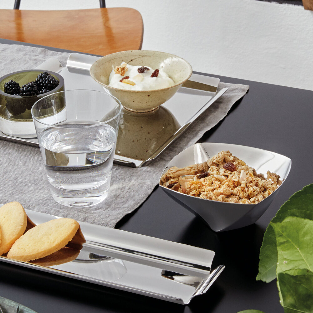 Gelince Haber VerSambonet'in modern ve şık tasarımlı Sky Square serisinden olan 19x19 cm ebatlarında 56780-09 referans numaralı tepsi, mutfak ve yemek sunumlarınızda zarif bir dokunuş sağlar. İtalyan tasarımı ve kalitesiyle ön plana çıkan bu tepsi, dayanıklı malzemelerden üretilmiş olup, kolay temizlenebilir özelliktedir. Şık tasarımı ile özel günlerde ve günlük kullanımda tercih edebileceğiniz Sambonet Sky Square Tepsi, zarafeti ve fonksiyonelliği bir arada sunuyor.