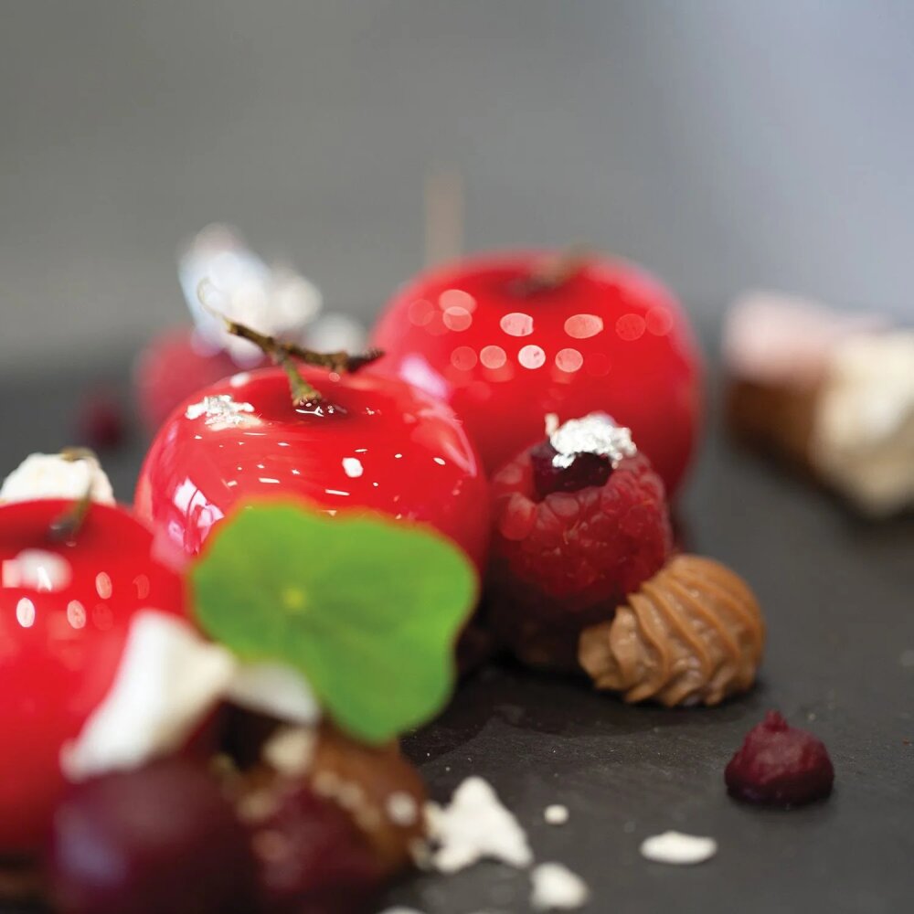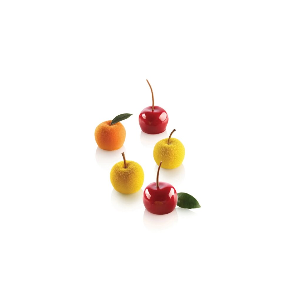 Silikomart Mela ve Kiraz Silikon Pasta Kalıbı, meyve şekilli zarif tatlılar ve pastalar yapmak isteyenler için mükemmel bir seçimdir. Elma ve kiraz formundaki tasarımıyla görsel olarak etkileyici sonuçlar elde etmenizi sağlar. Bu kalıp, hem profesyonel şefler hem de evde hobi amaçlı pasta yapanlar için idealdir.
