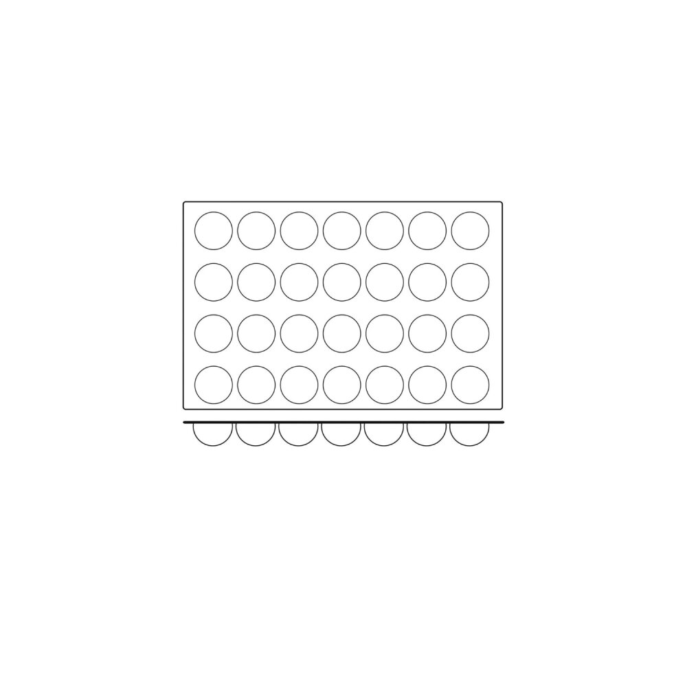 - Boyutlar: 60x40 cm boyutlarında bir kalıp içerisinde 28 adet Ø70 mm çaplı yarım küre kalıp bulunmaktadır.