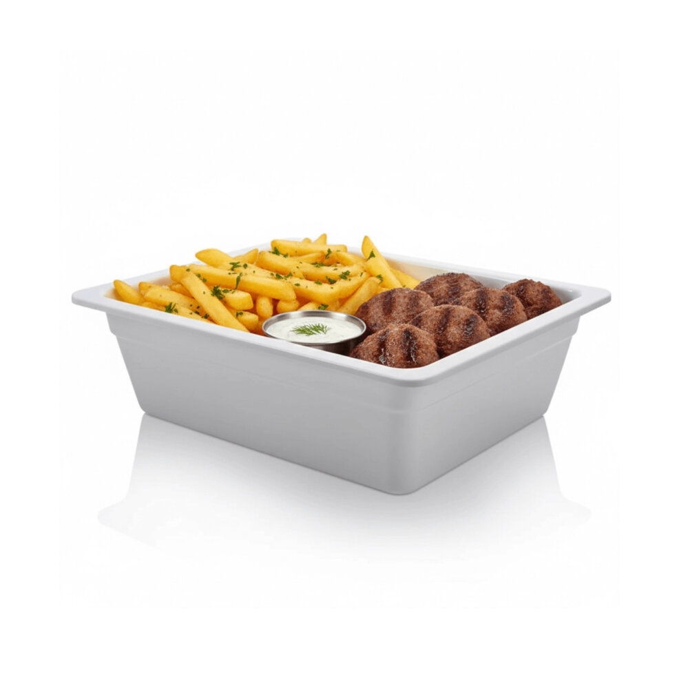 Isıya dayanıklı yapısı sayesinde soğutucu, bain-marie veya servis ünitelerinde kullanılabilir.