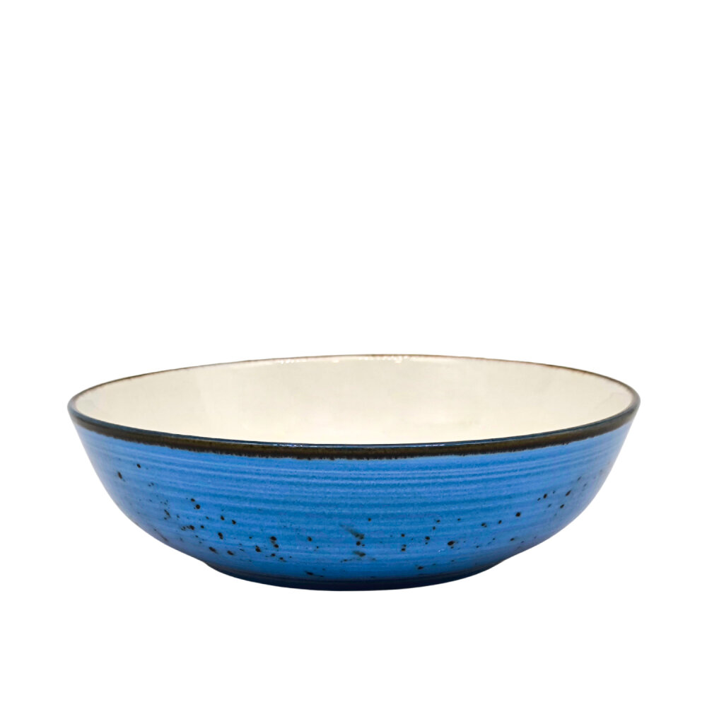 Gelince Haber VerTulu Porselen'in TK serisine ait 23 cm çapındaki Reactive 93 mavi desenli salata kasesi, modern ve şık tasarımıyla öne çıkıyor. Geniş boyutuyla çeşitli salata ve meyve sunumları için idealdir.