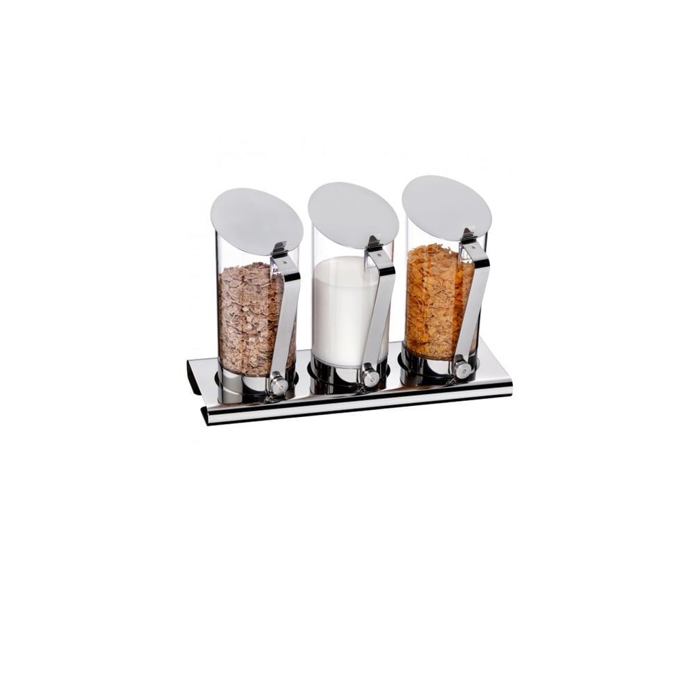 WMF Juice & Cereal Seti, kahvaltı büfeleri ve açık servis alanları için tasarlanmış şık ve fonksiyonel bir sunum setidir. Üçlü dağıtıcı sistemiyle hem meyve suları hem de tahıllar hijyenik ve düzenli şekilde sunulabilir.